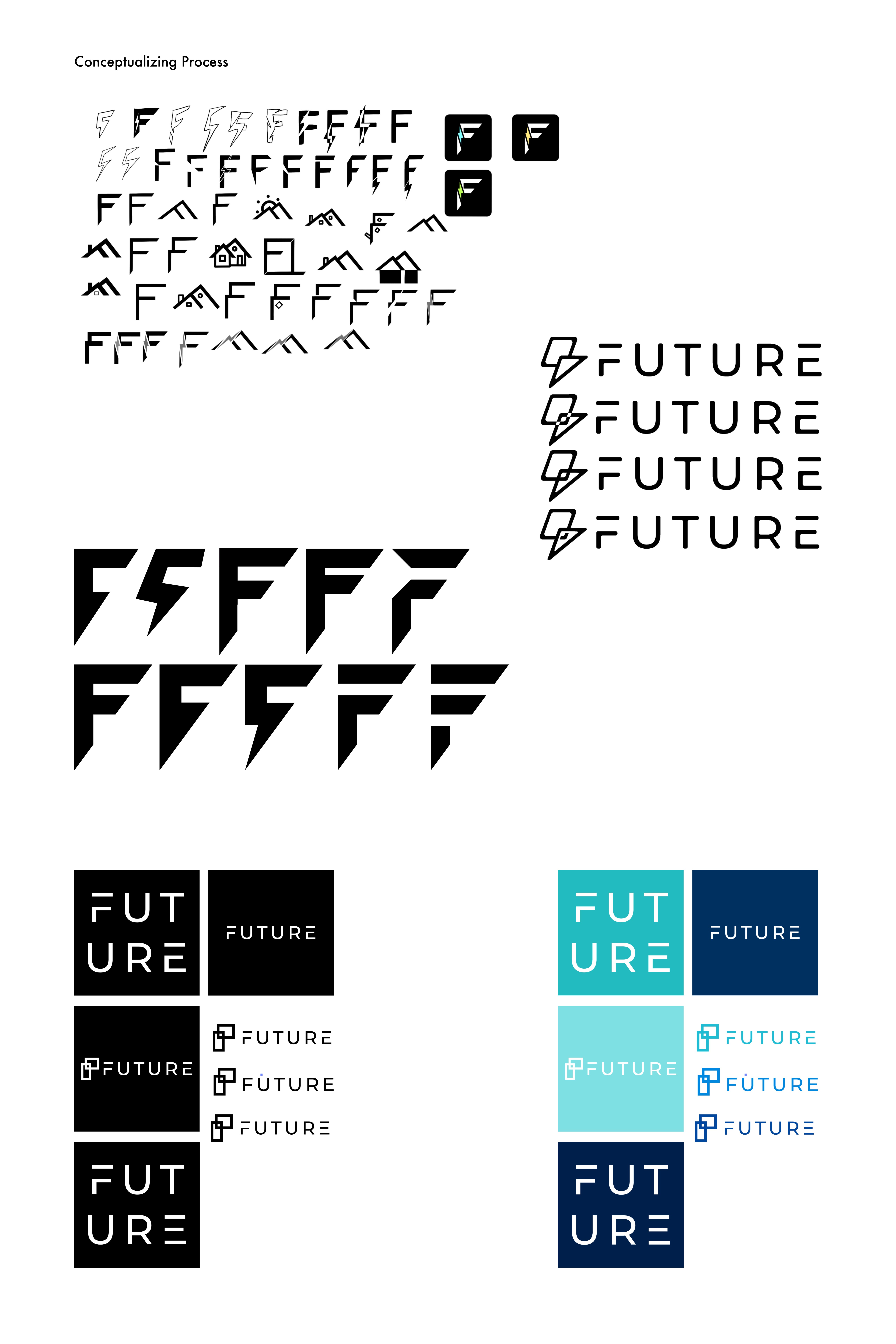 I focused on integrating the theme of energy efficiency with the letterform "F" from the FUTURE wordmark. I started with a sketching phase on Procreate, experimenting with different concepts that represented both sustainability and the company’s core identity. After refining the ideas, I moved to Illustrator to create professional iterations, carefully adjusting typography, shapes, and colors to ensure the final logos conveyed a clean, modern, and energy-conscious feel. This process helped align the brand’s visual identity with its mission.