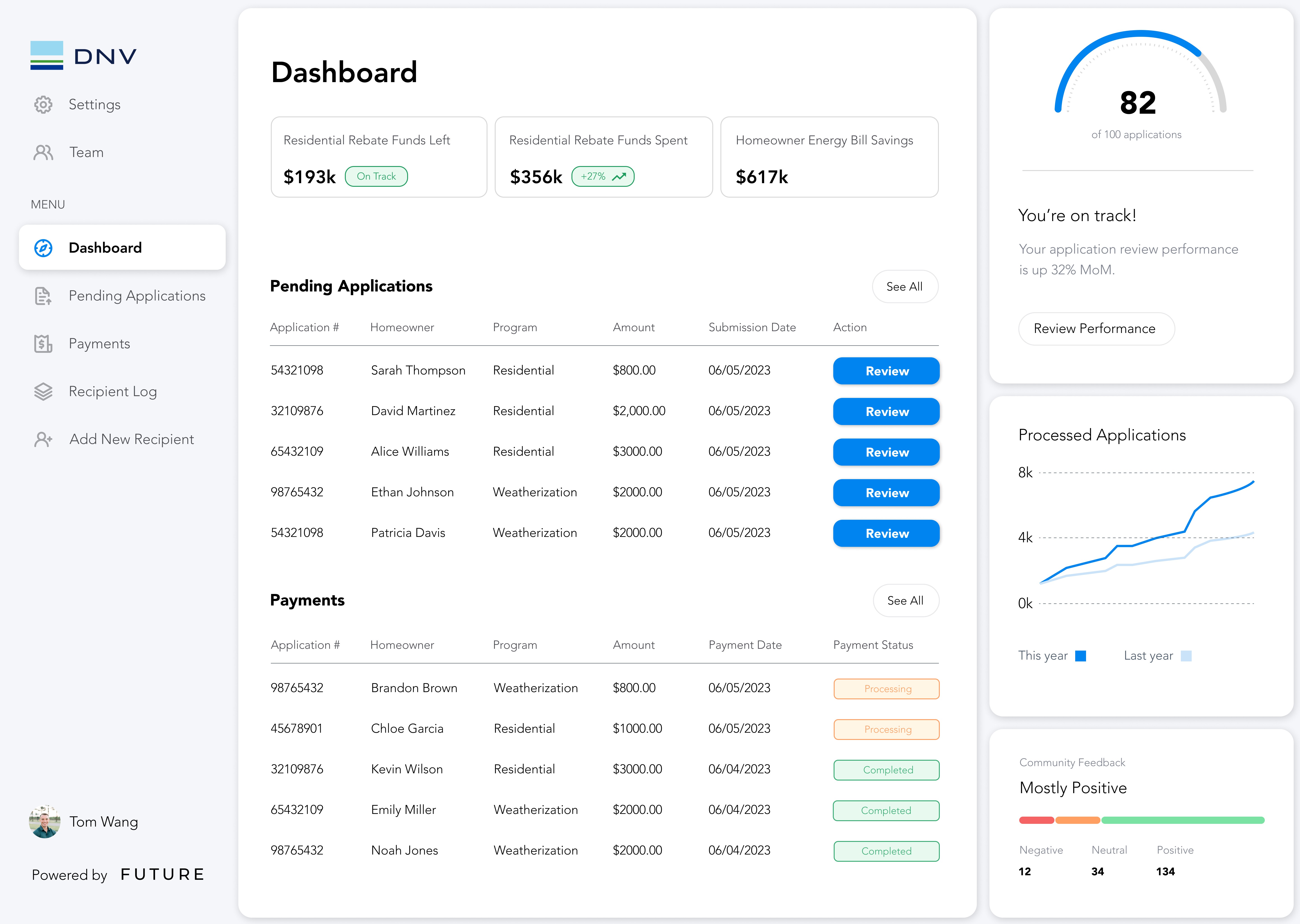 All appliances and financial statistics overview gives users a one-stop platform for all rebate/incentives.
